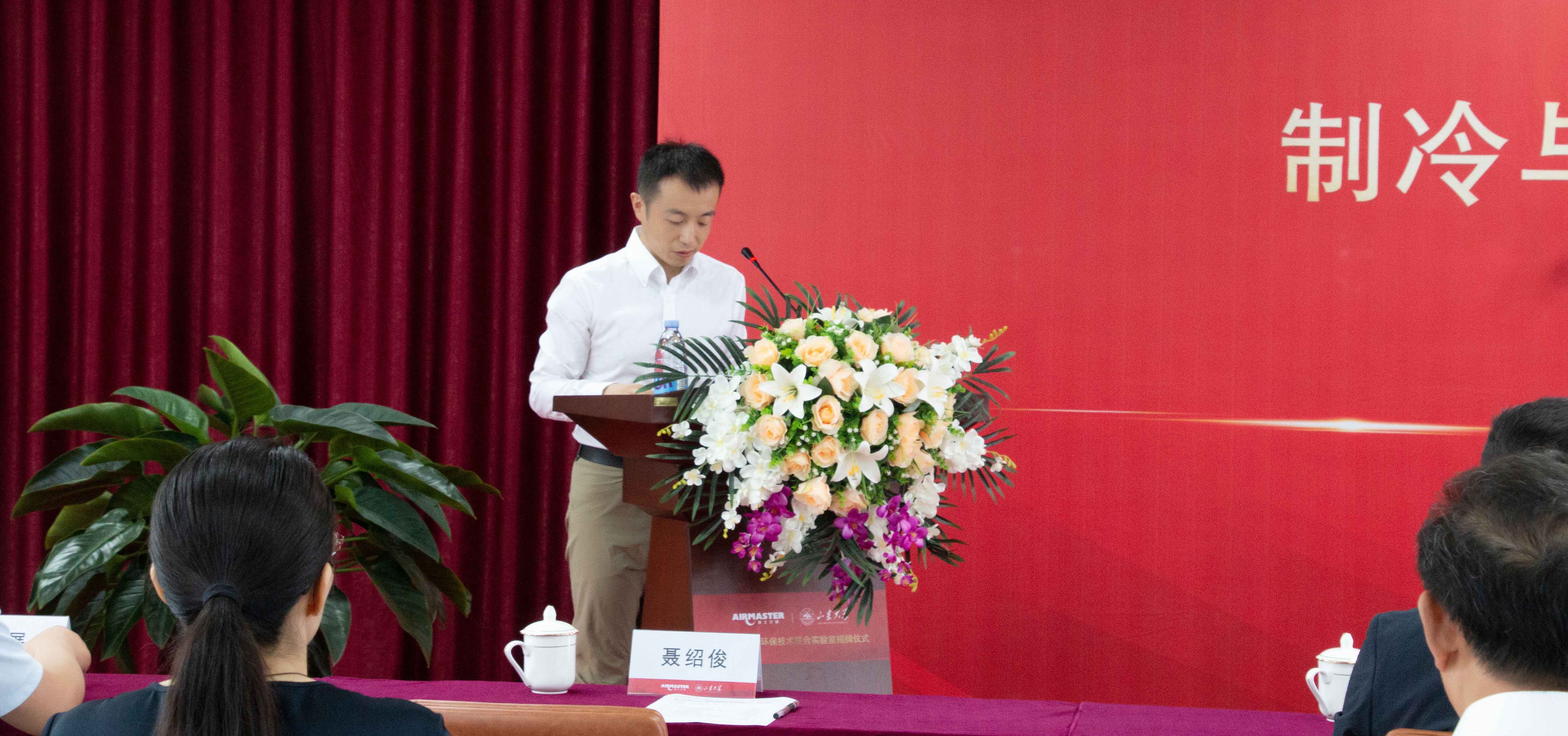 山東大學熱科學與工程研究中心主任、高等技術研究院 孫鍥副院長就“聯合實驗室的課題研究情況”進行了介紹,并表示聯合實驗室的創建,是產學研成果落地的重要載體。未來雅士集團、山東大學將立足各自優勢,在自然工質、制冷儲能、核心潔凈技術方面等多個細分領域取得關鍵性技術突破,共同推動科研成果的產業轉化與應用,將實驗室建設成為開展高層次學術交流與科研合作的重要基地。