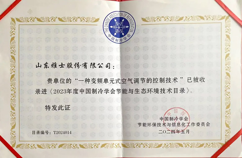 5月30日,以“新時(shí)代、新機(jī)遇”為主題的2024中國制冷學(xué)會(單位)會員大會在山東省青島市舉辦。會上,中國制冷學(xué)會公示了2023年度節(jié)能與生態(tài)環(huán)境產(chǎn)品(技術(shù))目錄,雅士憑借其在變頻單元式空氣調(diào)節(jié)控制技術(shù)領(lǐng)域的卓越表現(xiàn),成功入選該目錄。