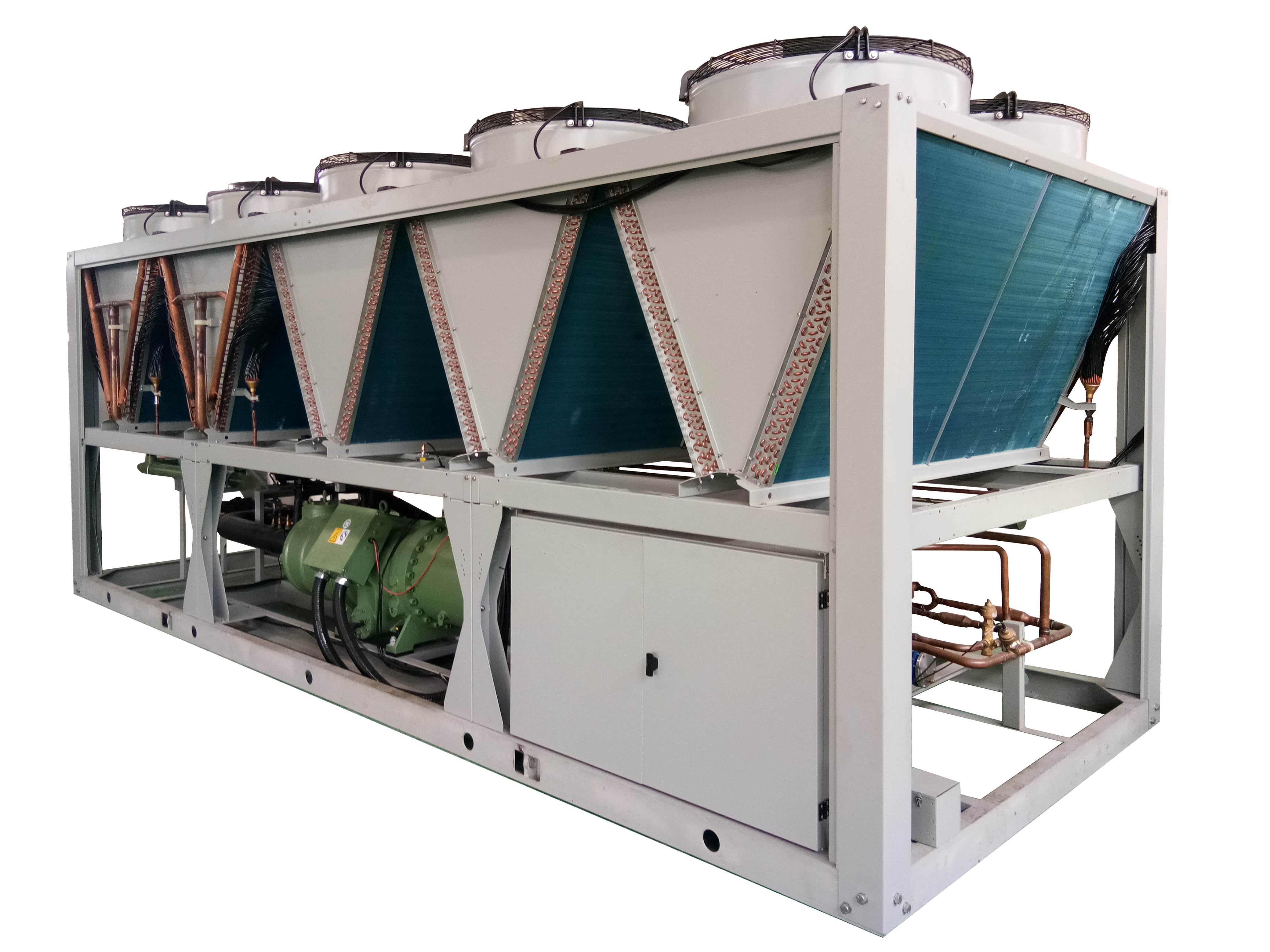該機組以空氣為冷熱源,沂水為載冷(熱)機制,集制冷、供熱于一體,無需冷卻塔、冷卻水泵等輔助設施。