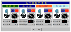 執行器手動操作界面 操作人員可以通過此界面直接手動干預水閥、風閥、變頻器的運行狀況,以應對預料之外的突發事件。 |