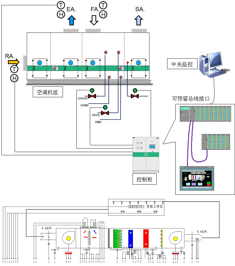 1.送回風溫濕度實時監測;新排風溫濕度實時監測;室內溫濕度檢測(多點);